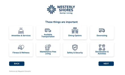 Not all prospects want a tour or in-person visit. Not all are ready to talk to someone. Waypoint’s AI Sales Assistant lets visitors select their journey, meeting each person where they are mentally and emotionally. This personalized multi-path approach mimics in-person consultative sales behavior digitally, dramatically reducing mid-funnel drift, and maximizing lead conversion.